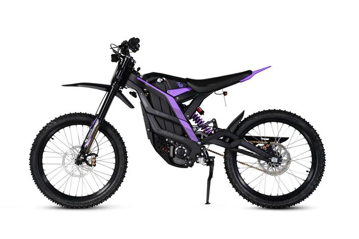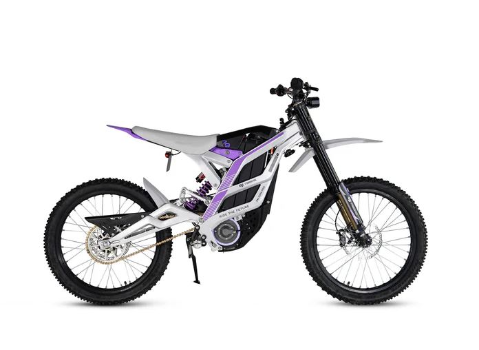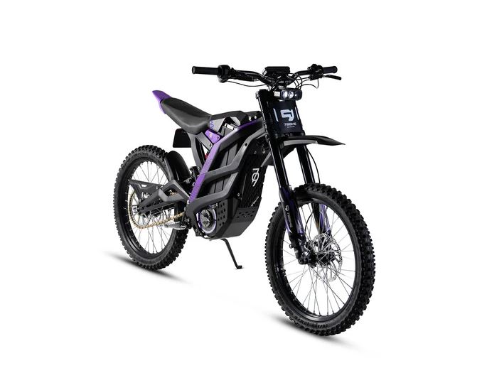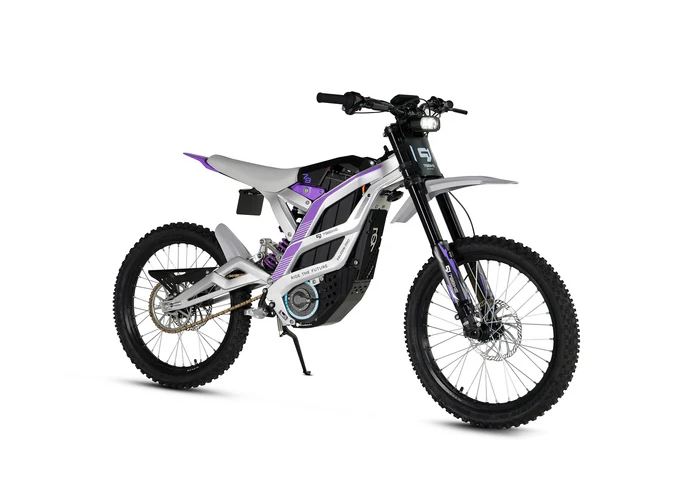 The Falcon Pro is a high-performance electric dirt bike featuring a range of up to 75 miles and a top speed of 53 mph. It is equipped with a Fastace 2.0 Fork for a smooth ride.