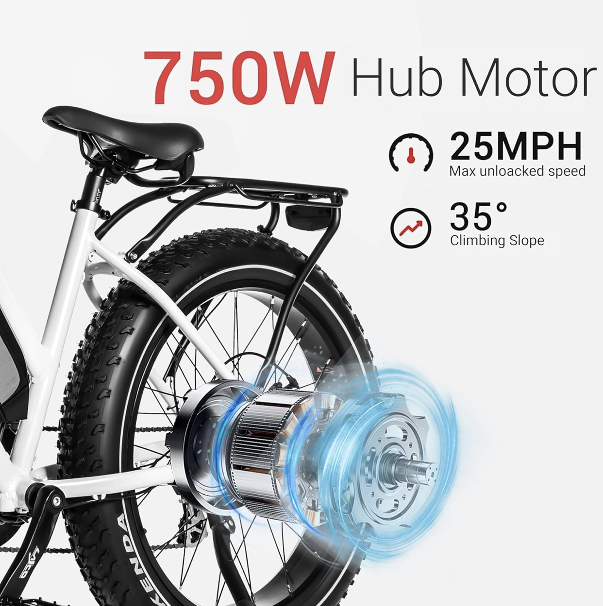 - Tires 26″ x 4″ Kenda fat tires