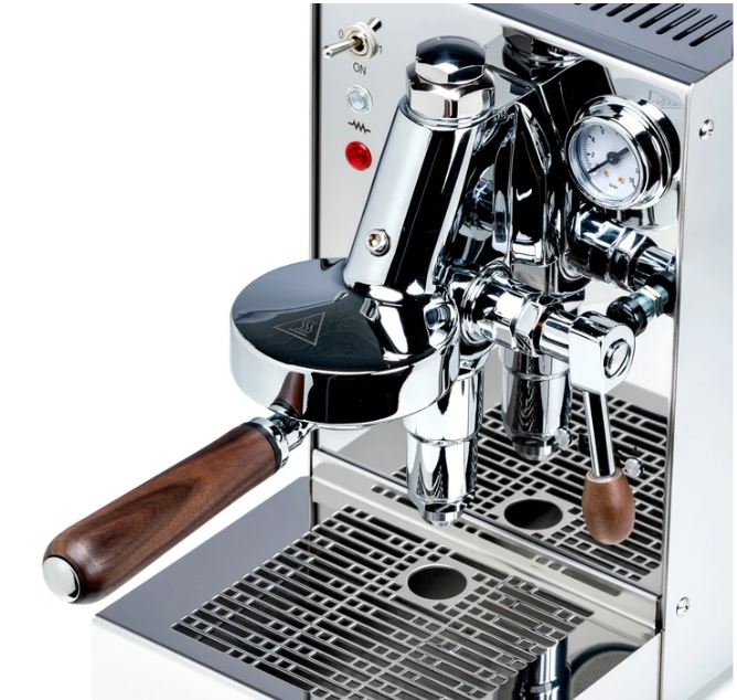 Discover the LUCCA Solo espresso machine, the latest and most compact addition to the LUCCA lineup. Crafted by Clive and produced by Quick Mill, this E61 single-boiler machine is perfect for espresso enthusiasts who value uncompromising quality. The precise PID temperature control ensures optimal brewing conditions. Featuring a sleek design with black and stainless steel finishes and elegant walnut accents, the Solo combines beauty with durability. Plus, it’s available with flow control for enhanced brewing precision!