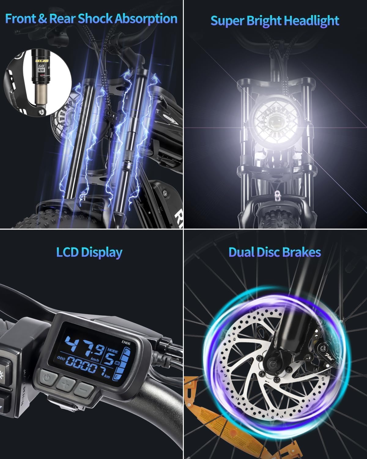Special Feature Digital Display, Taillight, Odometer, Headlight, Rechargeable, Dual Disc Brake, USB Charging Port, Phone Holder