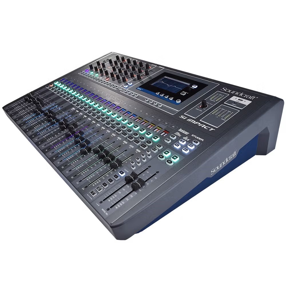 Drawing on over 40 years experience in live sound mixing, Si Impact brings the latest digital mix innovations together with the unrivalled sound quality of Soundcraft. Designed to be as simple as an analog mixer, but offer radical workflow enhancements such as the unique FaderGlow™ system, massive DSP power, and a pristine 32-in/32-out USB audio interface, Si Impact delivers digital live sound mixing and recording for those who refuse to compromise on audio quality.