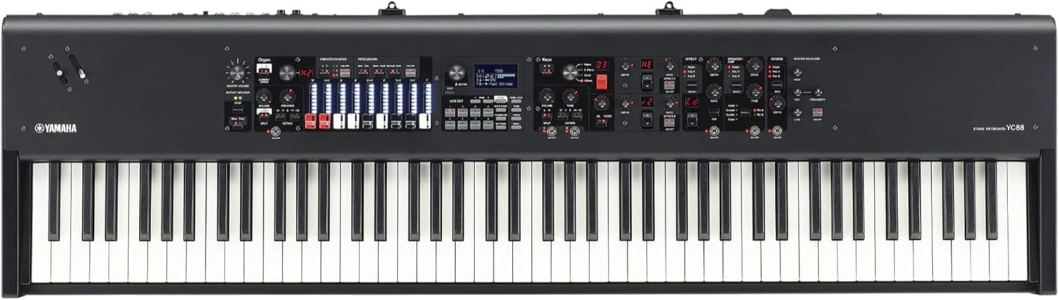 Size 88 Keys Age Range (Description) Adult Model Name YC88 Style Modern Connector Type 3.5mm Jack, AC Power Connector Connectivity Technology Auxiliary Power Source Corded Electric Headphones Jack 3.5mm Jack Instrument Electronic keyboard Manufacturer Yamaha UPC 889025132626 889025132596 Item Weight 55.9 pounds Product Dimensions 9.1 x 9.1 x 9.1 inches